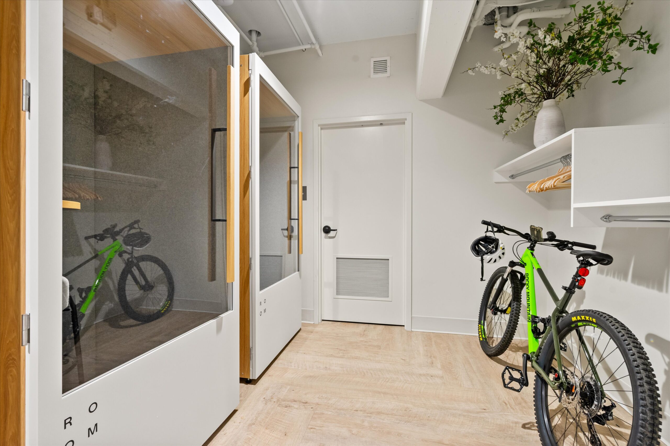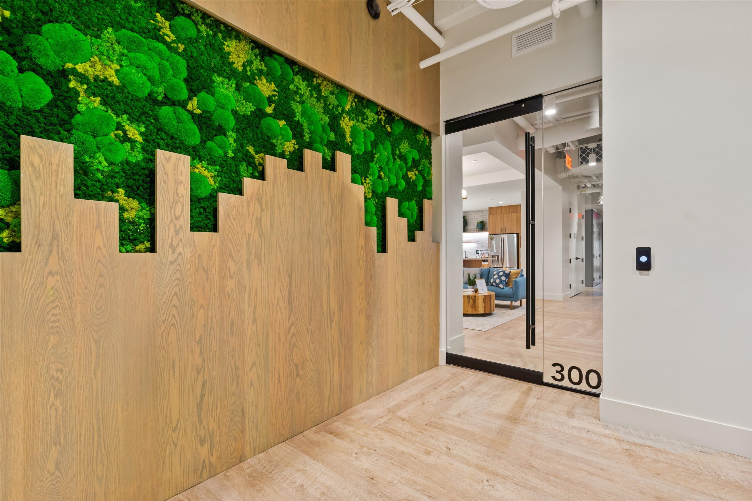 Positioned in a corner away from main traffic areas, this suite offers workspace with added privacy. Eleven workstations provide room to accommodate your team, while three internal offices adapt as meeting areas or individual offices based on your needs. Corner windows bring in natural light throughout the space.
